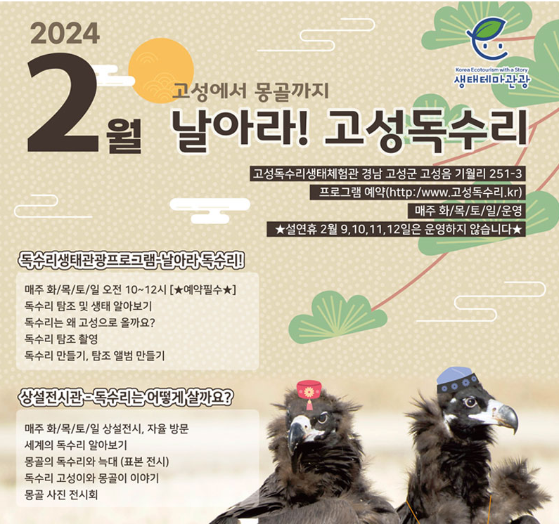 ☑️ 매주 화.목.토.일 오전 10시~12시 [예약 필수] 독수리 생태관광프로그램 운영 / 체험금액 1인당 15,000원